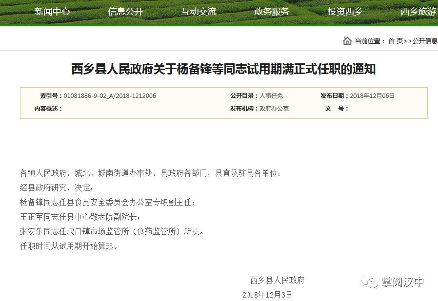 了解西乡县人事任免信息来源