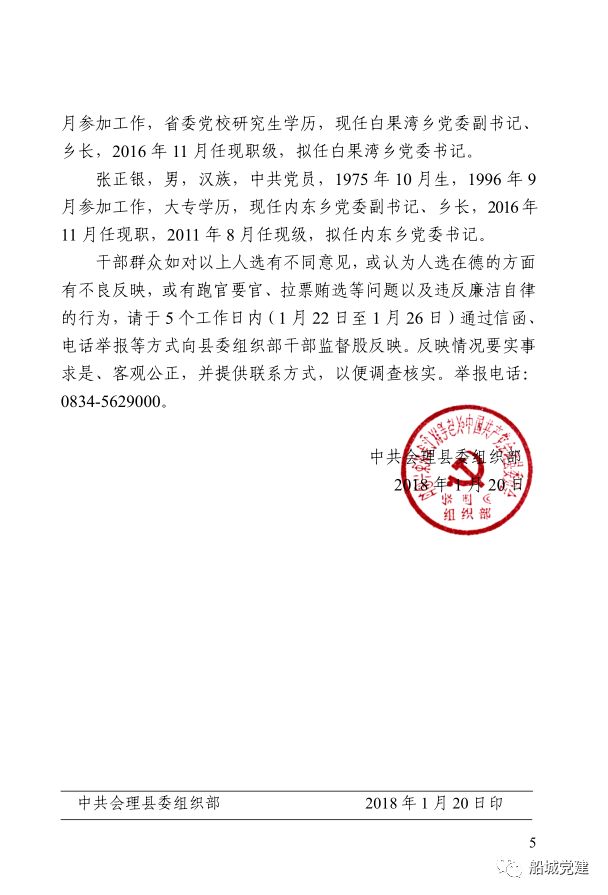 5、反馈意见:如对公示的干部有异议,可在公示期限内通过公示信息中提供的反馈途径进行反映。